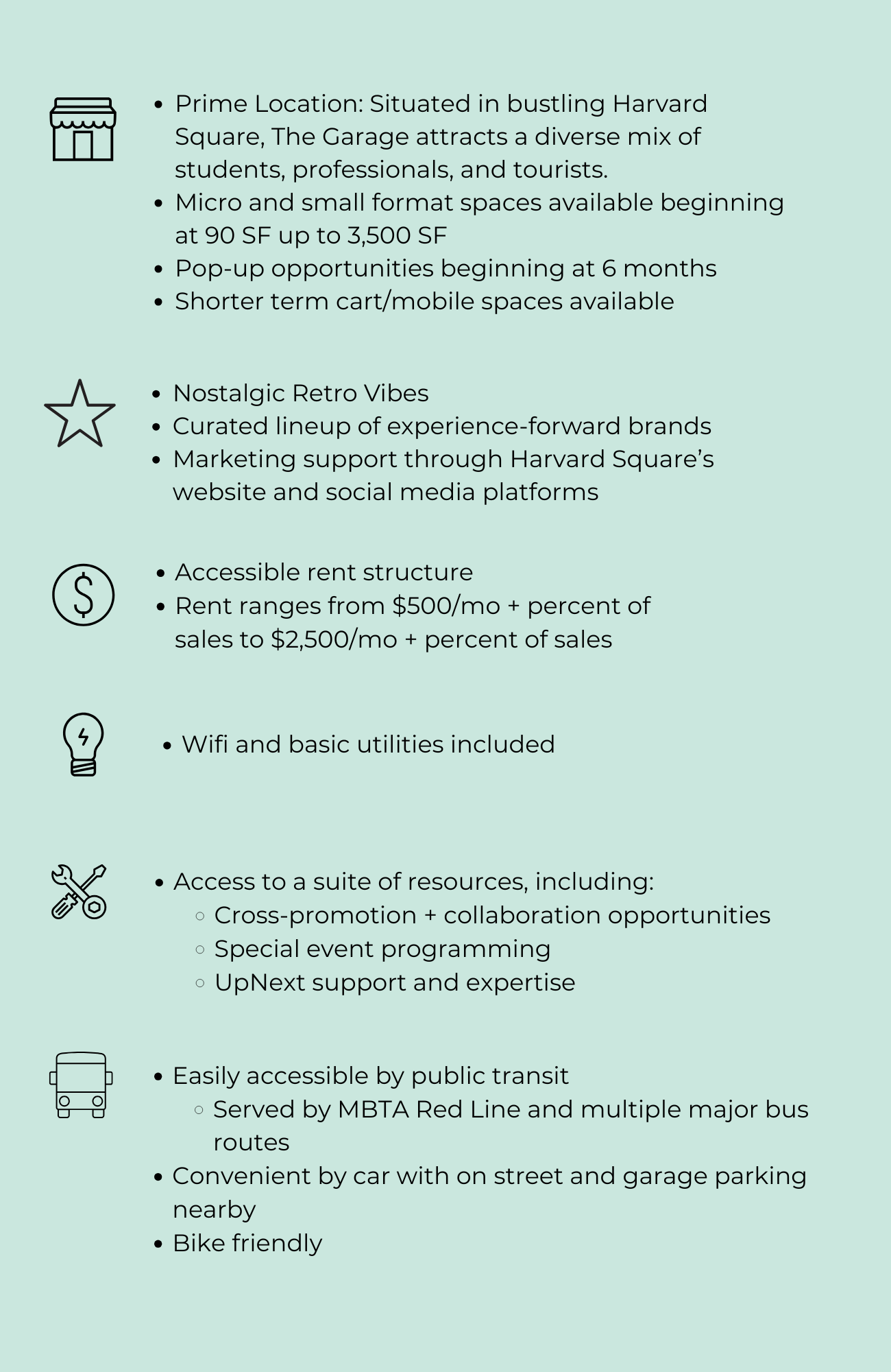 Anchored in the heart of Harvard Square, The Garage is a beloved local landmark with serious throwback charm. Once an actual parking garage, this eclectic building became a 90s hotspot known for its offbeat mix of comic shops, noodle joints, piercing parlors, and a whole lot of character. Now, it’s entering a new era—and you’re invited to be part of it.